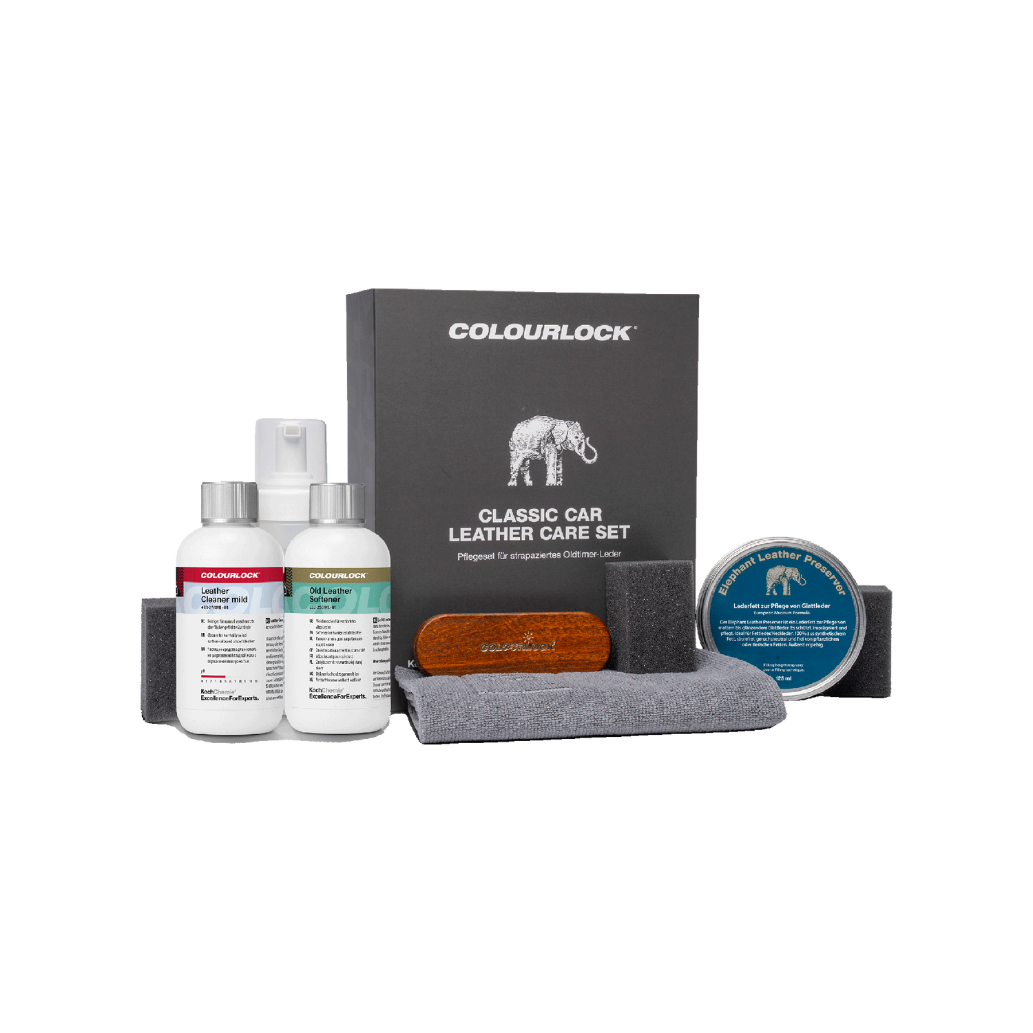 Koch-Chemie × COLOURLOCK COLOURLOCK "Classic Car Leather Care" Set (Care Set for Worn Vintage Car Leather) - 9-piece set (625 ml) is backordered and will ship as soon as it is back in stock.