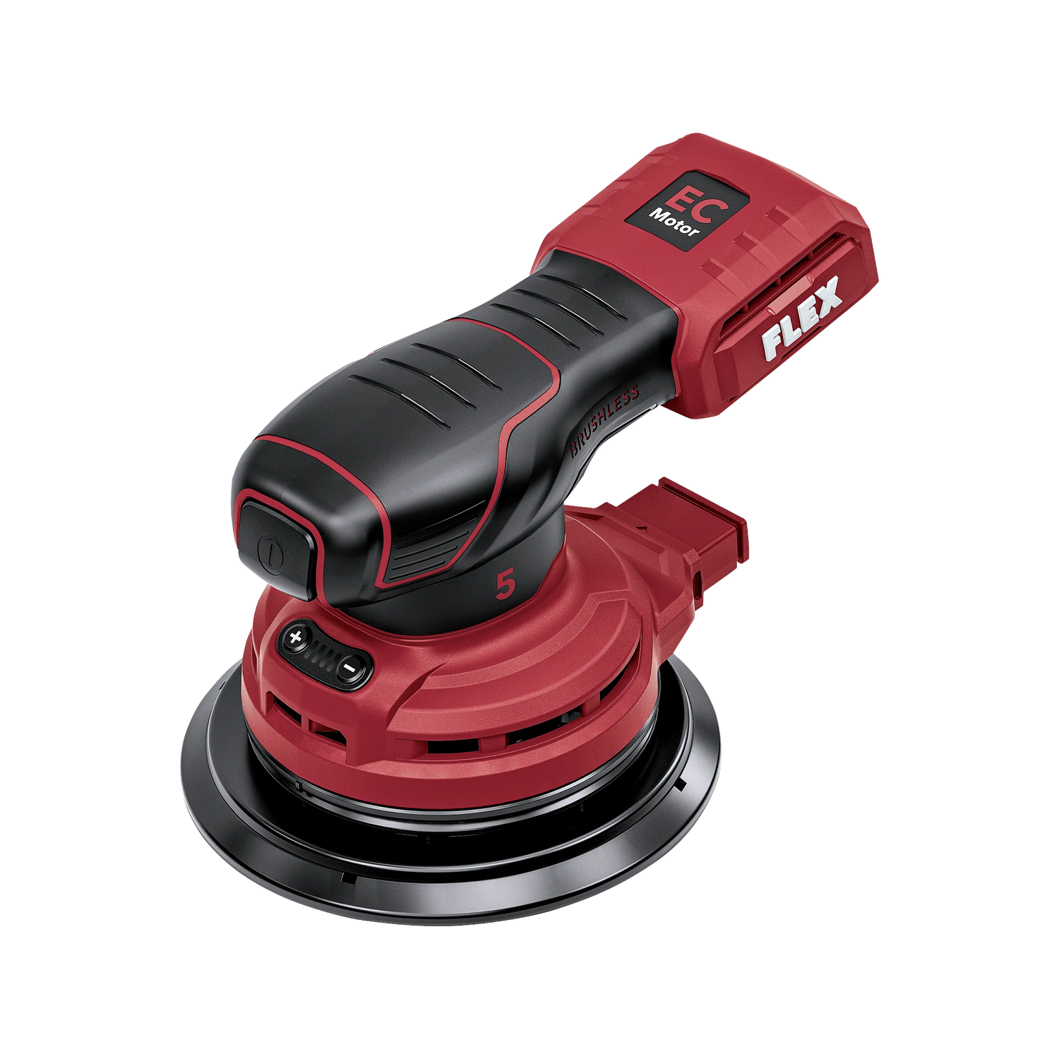 The brushless motor of the ORE 5-150 18-EC C operates on the BLDC principle without carbon brush wear. This is particularly relevant in battery operation: A brushless motor converts more of the stored battery energy into sanding power, generates less waste heat, and maintains power more stably as the battery level drops than a brushed drive. This means: more sanding minutes per battery charge, and a more consistent sanding pattern even at the end of the work cycle.