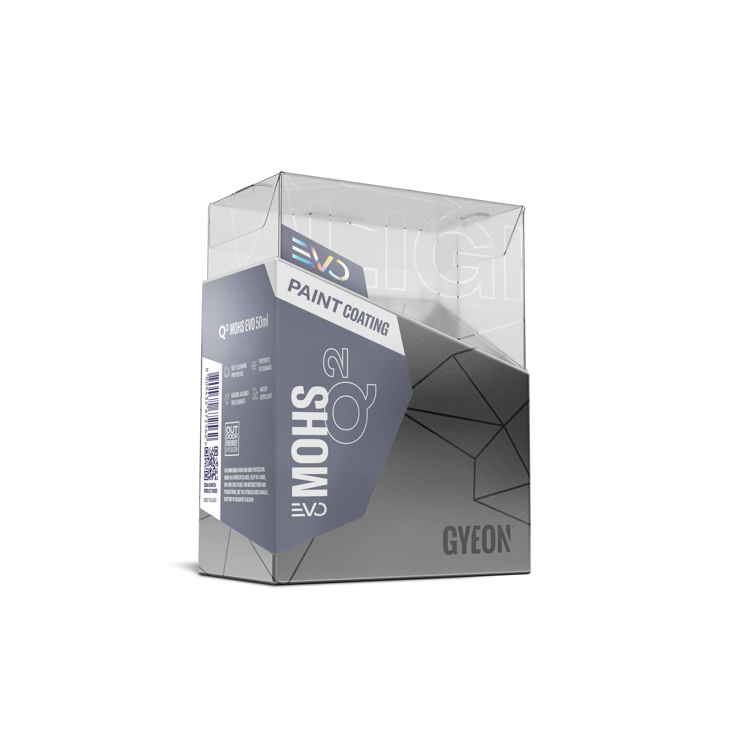 GYEON Q² Mohs EVO is one of GYEON's flagship coatings – a professional ceramic coating that combines maximum protection with a pronounced gloss effect. The coating forms a hardness-optimized SiO₂ layer that is chemically bonded to the clear coat and offers lasting protection against scratches, UV radiation, bird droppings, and chemicals. Mohs EVO is the advancement of the proven Mohs – with improved adhesion, higher layer thickness, and a more intense gloss level.