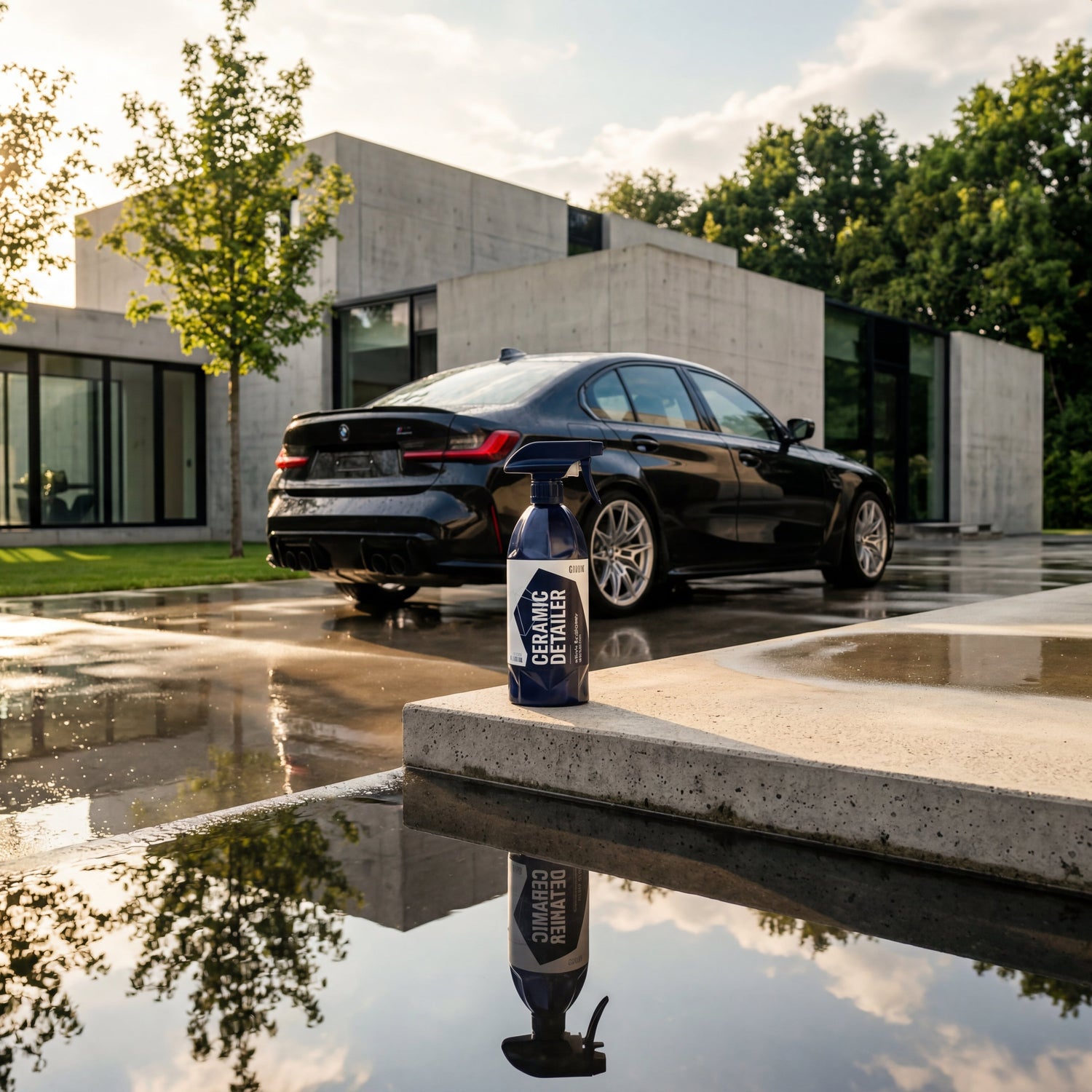 The CeramicDetailer lasts up to 6 weeks under optimal conditions — garaged vehicle, no continuous wetness, no winter operation. In everyday life with outdoor parking, rain, and occasional car wash visits, 3–4 weeks are more realistic. This is not a defect, but the expected result of a quick detailer — products in this category are designed for quick refreshment, not durability.