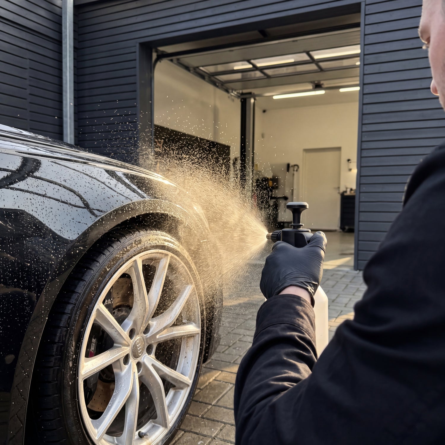 Practical tip from Detailing1: ALWAYS pre-wet the surface. Applied dry, the hydrochloric acid reacts too quickly and attacks the surface more severely than necessary. Water as a pre-wetting agent slows down the reaction and distributes the concentrate evenly. Second common mistake: leaving it on for too long. With a pH of -0.2, 30 to 90 seconds are sufficient — after that, the product must be rinsed off thoroughly with high pressure. Drying causes material damage, not "a little longer for more cleaning".