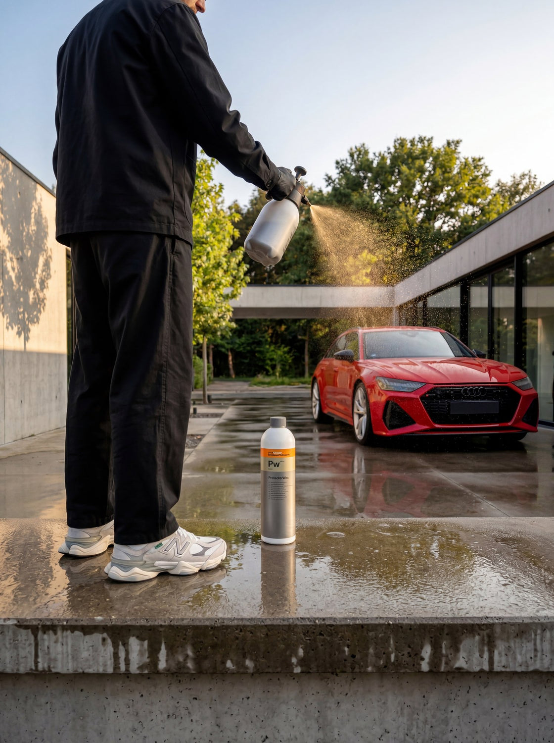 On ceramic-sealed vehicles, Pw is superfluous — ceramic already has better durability and hydrophobicity. Here, the Koch-Chemie Spray Sealant S0.02 is the more suitable choice as a coating refresh. If you want to protect unsealed paint and wash regularly: Protector Wax. If you want to maintain an existing coating: Spray Sealant.