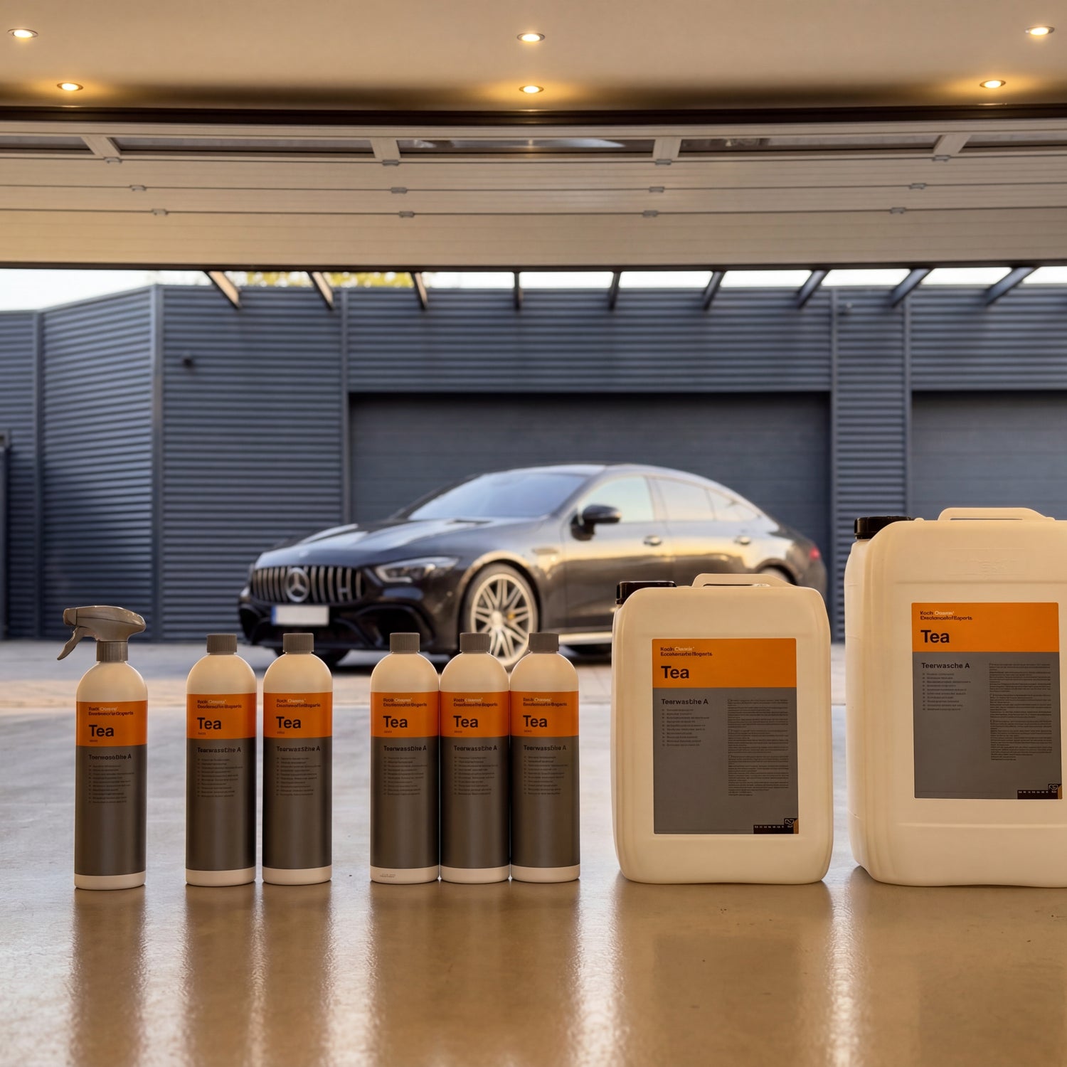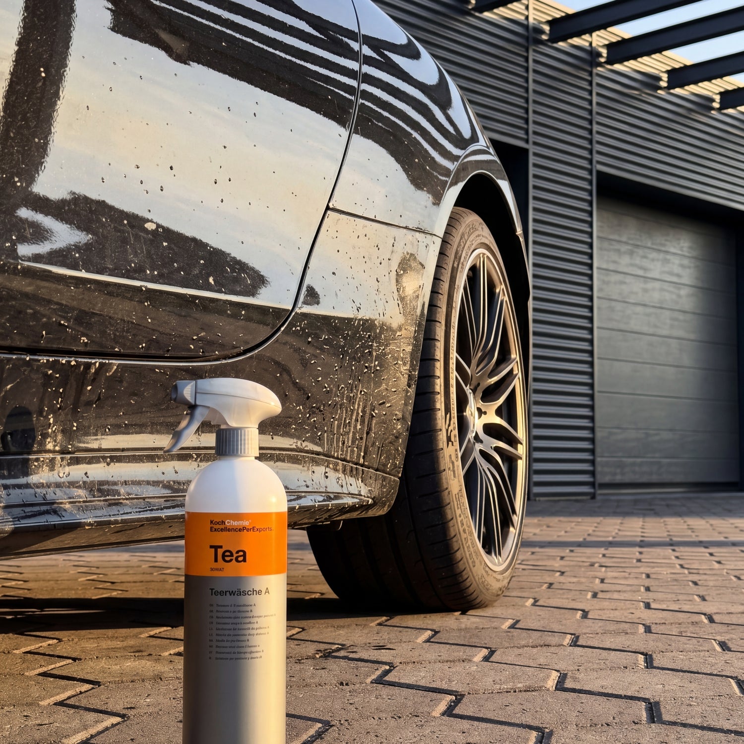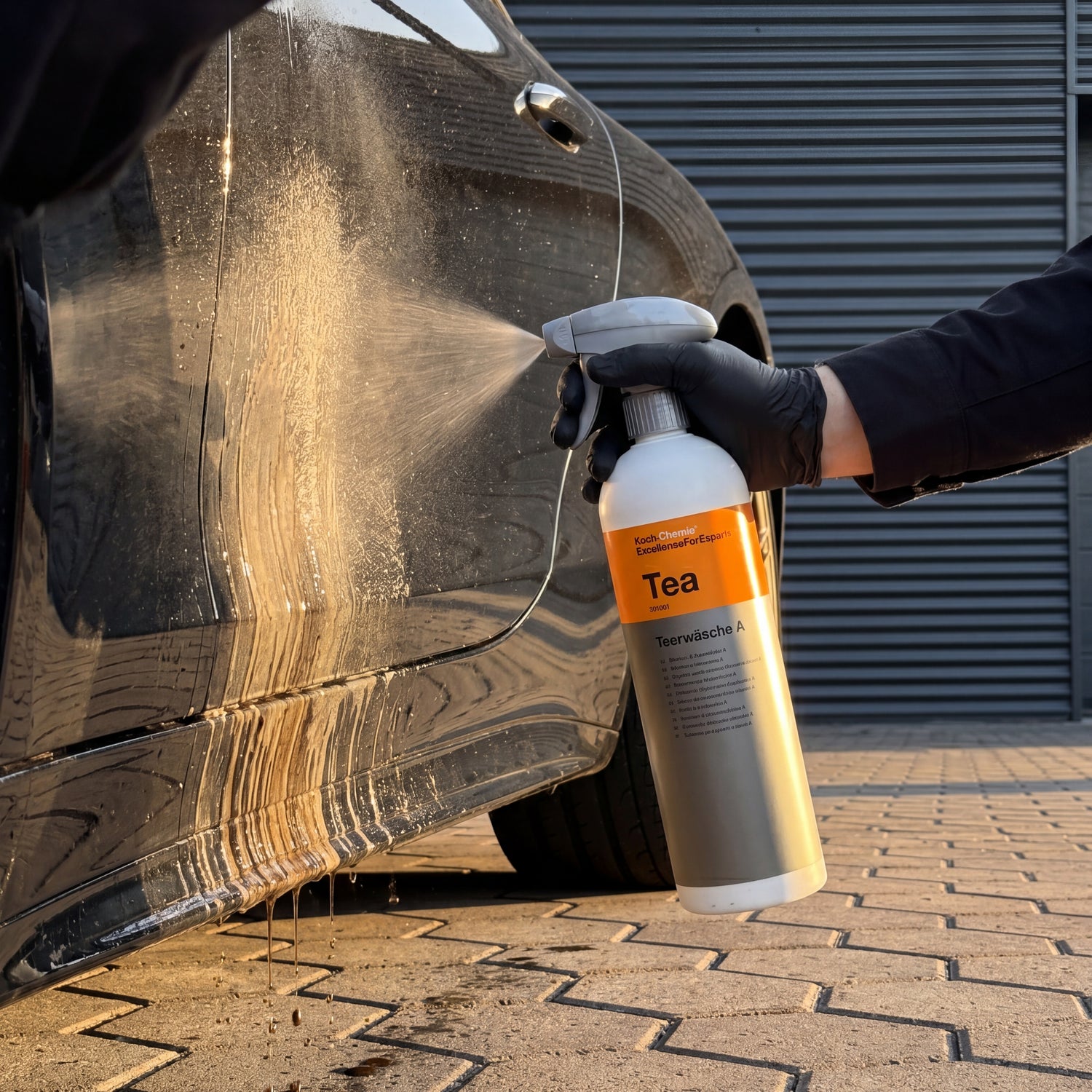 Practical Tip from Detailing1: Tar and Bitumen Remover A not only dissolves tar – it also dissolves the wax or sealant underneath. This is the point that manufacturers and competitors rarely mention. If you do nothing after tar removal, you will have unprotected paint that will be affected by rust film and water spots without a barrier. Therefore, always plan its use as the first step in a combined treatment: Tar wash → normal wash with pH-neutral shampoo → re-seal with spray sealant or wax. For spot application (individual tar splashes on the sill), a quick detailer is sufficient as local protection. For a complete exterior treatment including re-sealing, allow about 45 minutes for a mid-range car.