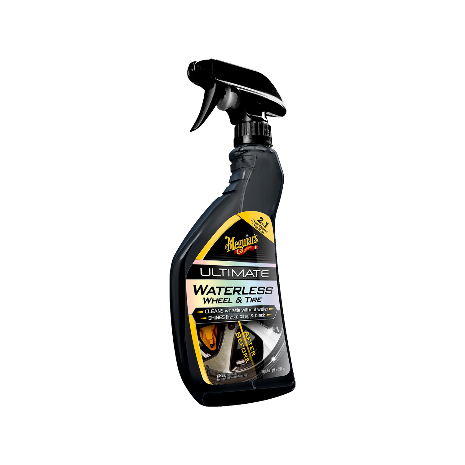 Meguiars Ultimate Waterless Wheel and Tire is the fast, waterless solution for complete wheel and tire care. The product reliably removes road grime, brake dust residue, and dried-on contaminants – and simultaneously gives tires a rich, deep shine.