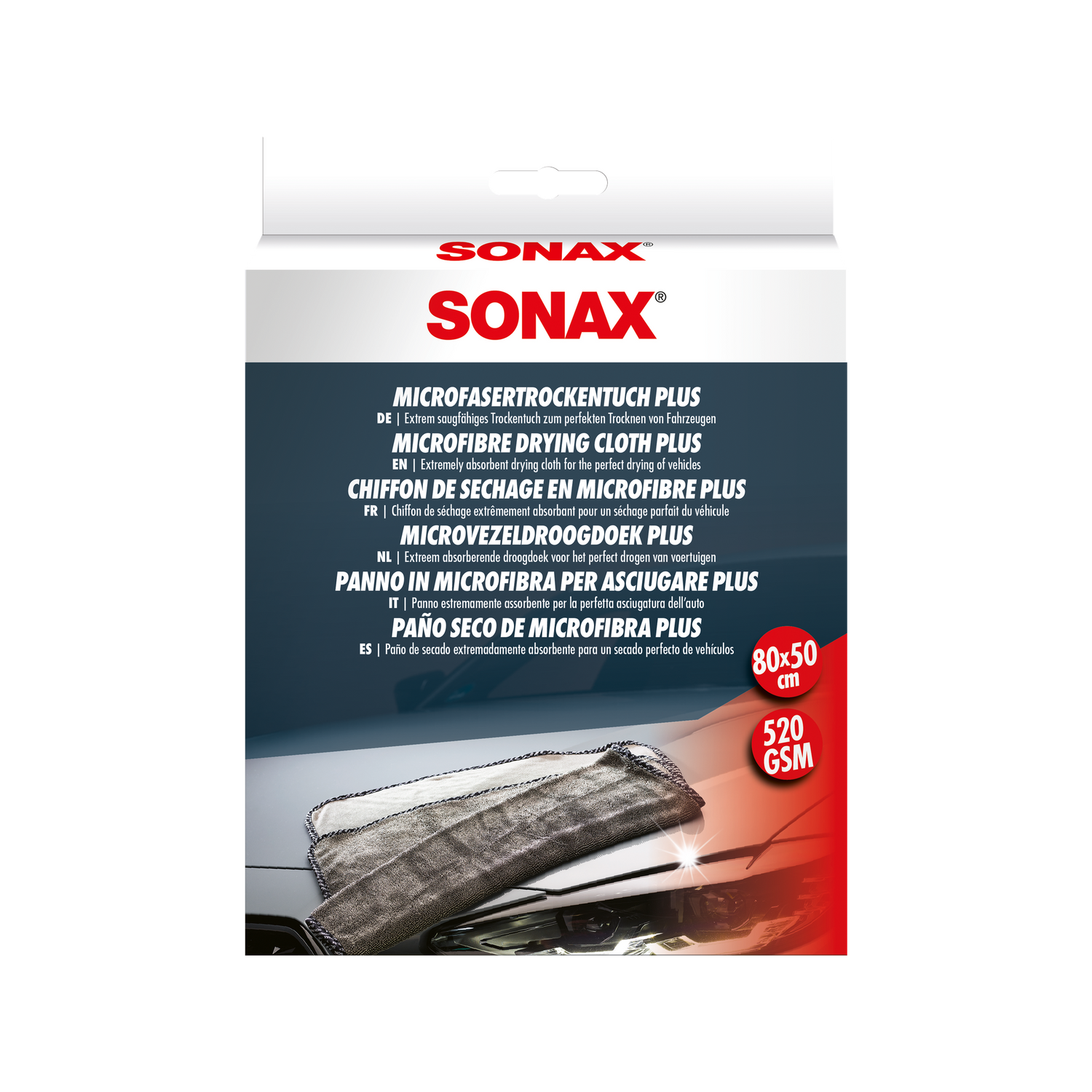 In the SONAX PROFILINE microfiber assortment, the PROFILINE drying towel has a specific role: it is the drying towel — optimized for maximum absorbency and large surfaces. The SONAX PROFILINE Microfiber Cloth "Soft Touch" is designed for polishing work — softer, but less absorbent, ideal for removing polishes and waxes. The PROFILINE Microfiber Cloth "Glass" is optimized for smoothness and streak-free results on glass surfaces. Each towel has its defined area of application — and the PLUS drying towel fulfills the most important one: quick, scratch-free drying after washing.