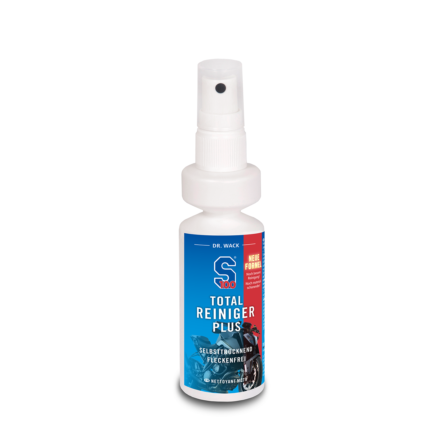 Der Motorrad-Reiniger mit Selbsttrocknungseffekt ist der Dr. Wack "S100" Total Reiniger Plus