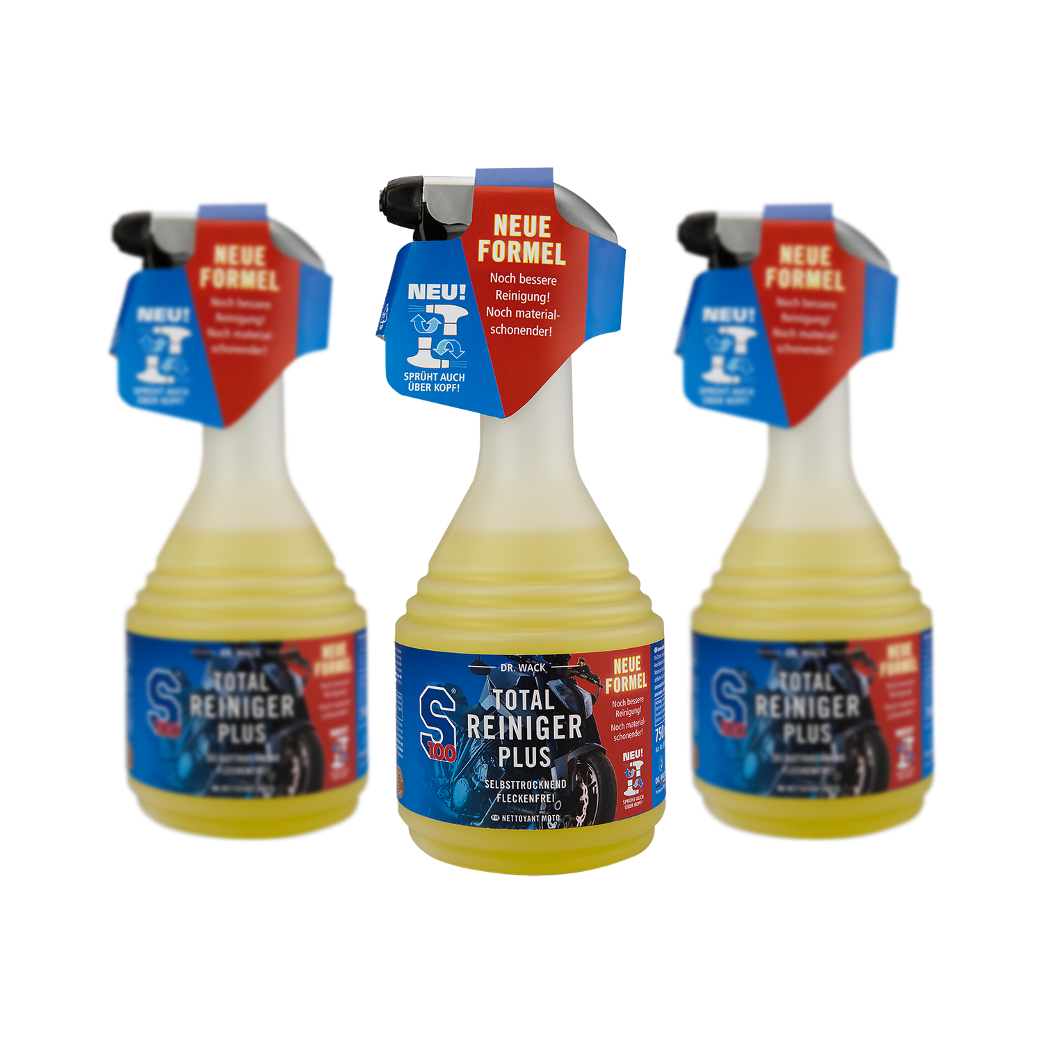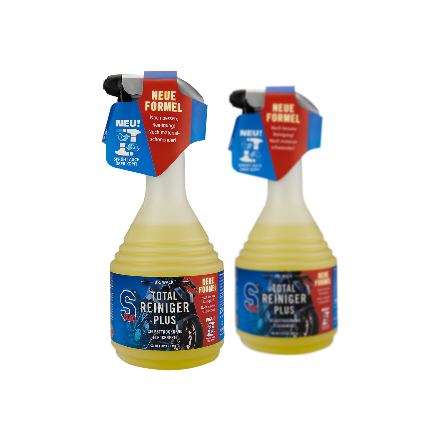 Der S100 Total Reiniger Plus ist jetzt auch mit einer praktischen Kopfüber-Sprühfunktion ausgestattet. So erreichst du mühelos schwer zugängliche Stellen an deinem Motorrad. Die Anwendung ist somit noch einfacher und effektiver – für eine rundum saubere Maschine.