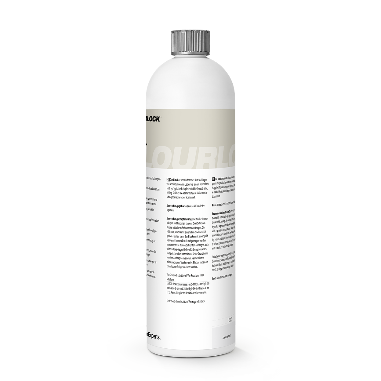 Wofür wird COLOURLOCK Blocker eingesetzt? — Der Blocker bildet eine isolierende Sperrschicht auf Leder, die verhindert, dass Verfärbungen, Durchschläge oder Farbwanderungen aus dem Untergrund an die Oberfläche gelangen.