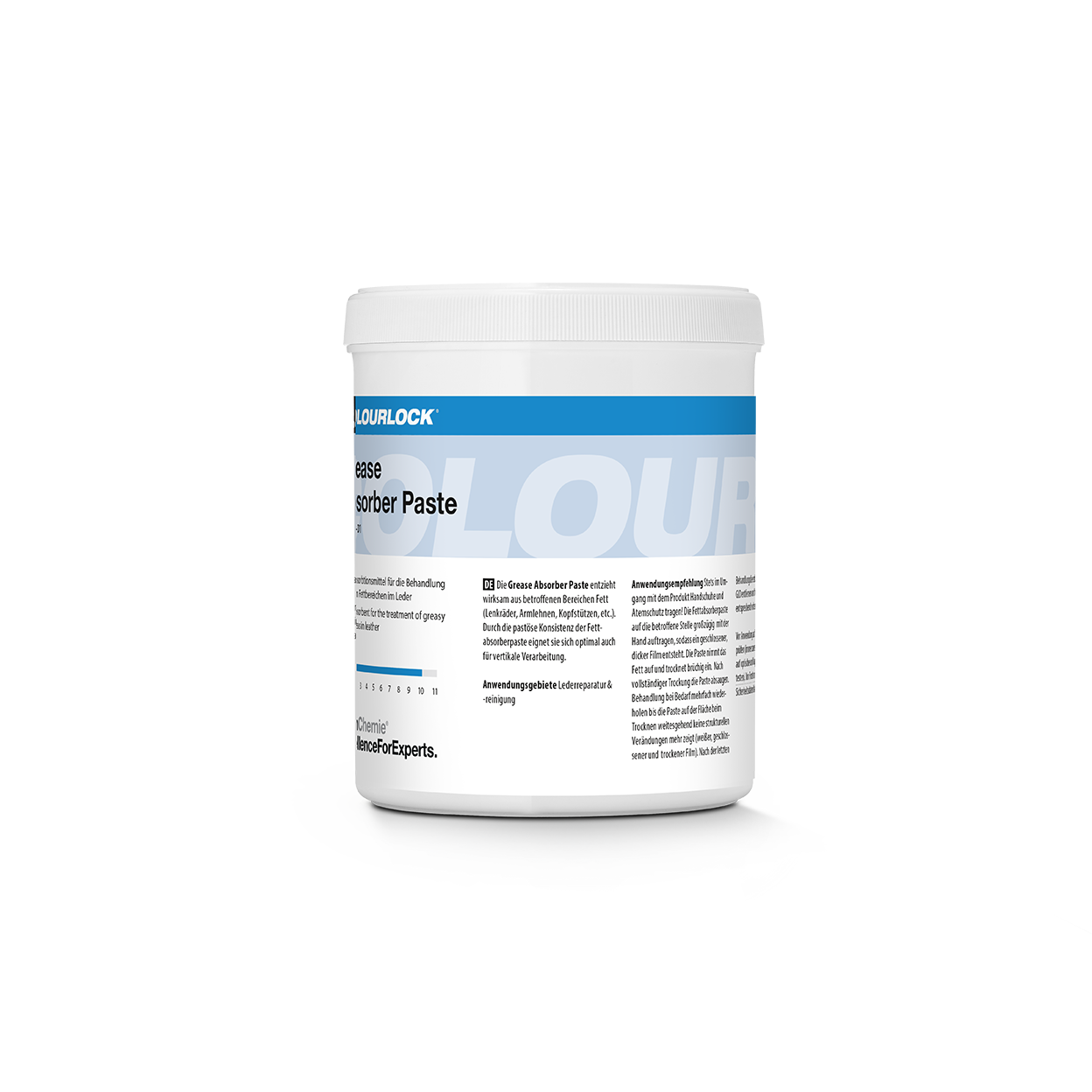 COLOURLOCK Grease Absorber Paste ist ein spezielles Fett-Absorptionsmittel zur Entfernung tief eingezogener Fett-, Öl- und Weichmacherflecken aus Leder. Besonders auf hellen Glattledern entstehen durch Hautkontakt, Armlehnen oder Kopfstützen dunkle Fettzonen, die sich mit herkömmlichen Reinigern nicht mehr lösen lassen. Die Paste zieht diese Rückstände kontrolliert aus der Lederstruktur heraus und hellt betroffene Stellen sichtbar auf. Während der Trocknung bindet das Produkt Fett im Inneren des Leders und transportiert es an die Oberfläche, wo es entfernt werden kann. Je nach Stärke des Flecks sind mehrere Anwendungen möglich. Die Grease Absorber Paste eignet sich ideal für Autositze, Möbel, Taschen und andere Glattlederflächen und schafft eine saubere Basis für anschließende Pflege, Versiegelung oder Farbauffrischung.