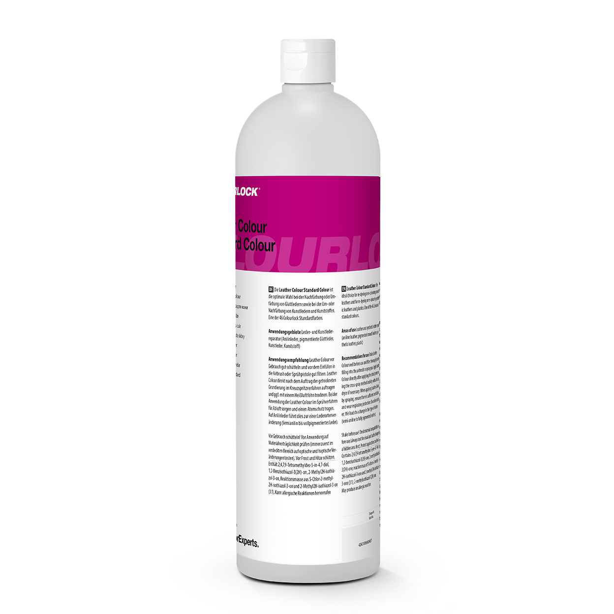 COLOURLOCK Leather Colour ist eine hochwertige Lederstandardfarbe für die Reparatur, Auffrischung und Neufärbung von pigmentiertem Glattleder verschiedenster Lederhersteller. Die Farbtöne sind präzise abgestimmt und decken ein breites Spektrum gängiger Lederfarben ab, sodass sie sich exakt und unauffällig in bestehende Lederoberflächen integrieren lassen. Die elastische, wasserbasierte Formulierung haftet zuverlässig, bleibt flexibel und folgt den natürlichen Bewegungen des Leders, ohne zu reißen oder hart zu wirken. Dadurch eignet sich die Farbe sowohl für punktuelle Ausbesserungen als auch für größere Flächen mit gleichmäßigem, professionellem Ergebnis. In Kombination mit einer abschließenden Versiegelung wird die Abriebfestigkeit deutlich erhöht.