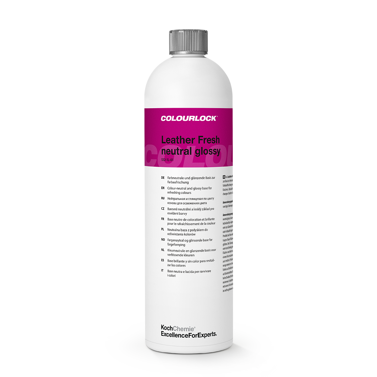 Koch-Chemie × COLOURLOCK COLOURLOCK "Leather Fresh" (Glossy / Neutral) Farbneutrale und glänzende Basis zur Farbaufrischung - Neutral / Glossy / Glänzend / 1000 ml / 1 Liter ist bereits nachbestellt. Sobald alle Produkte deiner Bestellung wieder verfügbar sind, versenden wir die Ware in einer gemeinsamen Sendung. Die Lieferzeit bestimmt sich nach dem Artikel in deiner Bestellung, der die längste Lieferzeit hat.