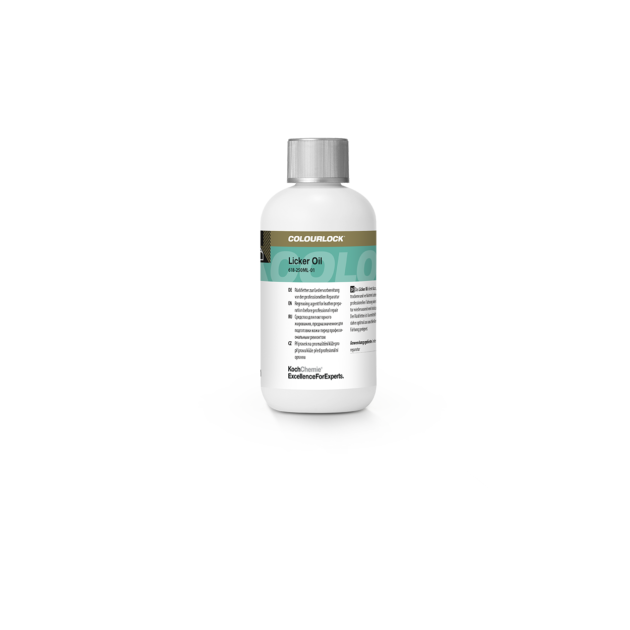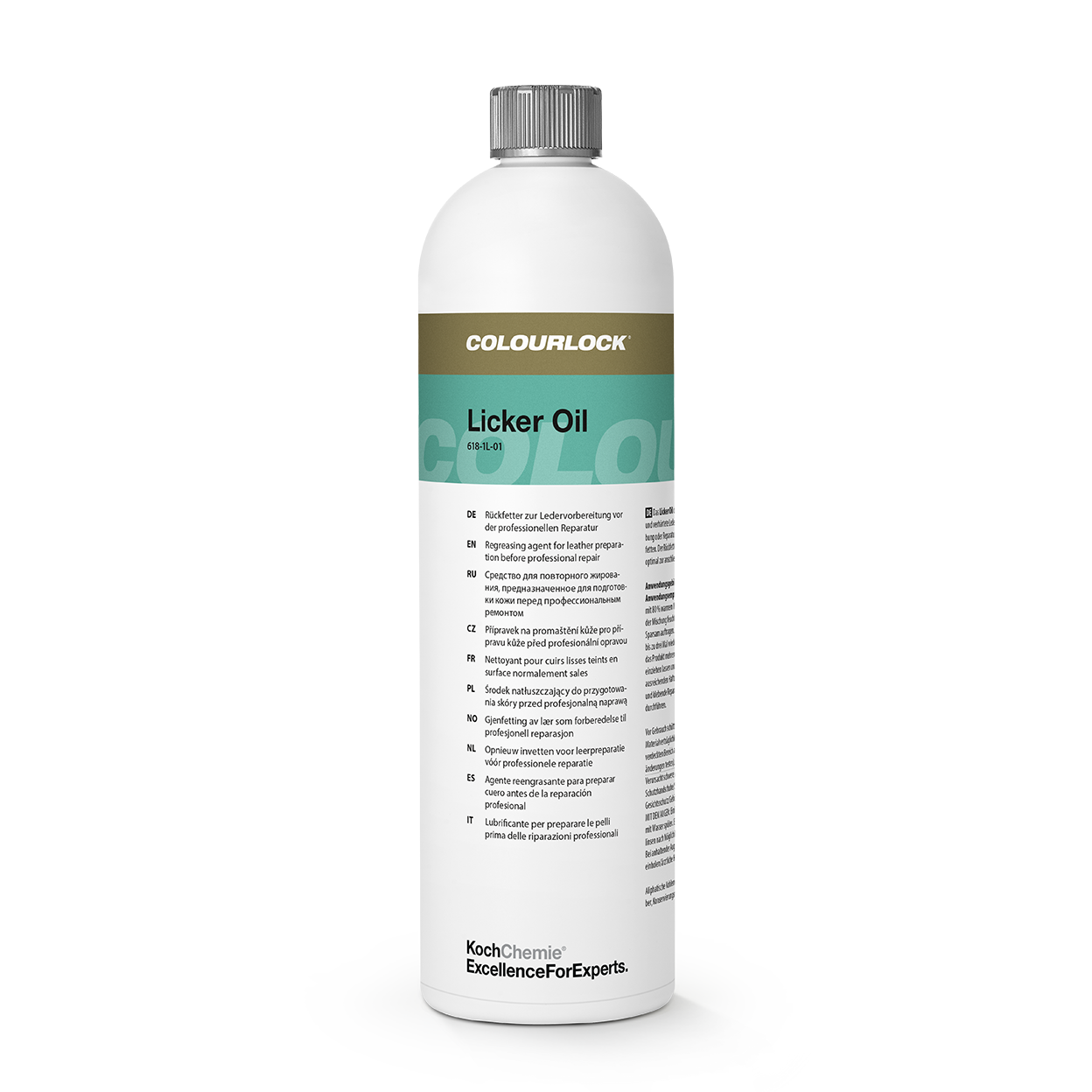 COLOURLOCK Licker Oil ist der professionelle Rückfetter zur Vorbereitung von gealtertem, ausgetrocknetem oder verhärtetem Leder. Stark beanspruchte Autositze, spröde Möbeloberflächen, alte Taschen oder Sattelbereiche profitieren von der tiefen Rückfettung, die die Lederfasern wieder flexibel macht. Licker Oil sorgt dafür, dass Reparaturmaterialien wie Filler, Binder oder Lederfarbe besser haften und gleichmäßiger verarbeitet werden können. Ein entscheidender Schritt, wenn du langlebige Ergebnisse bei strukturell geschwächtem Leder erzielen möchtest.