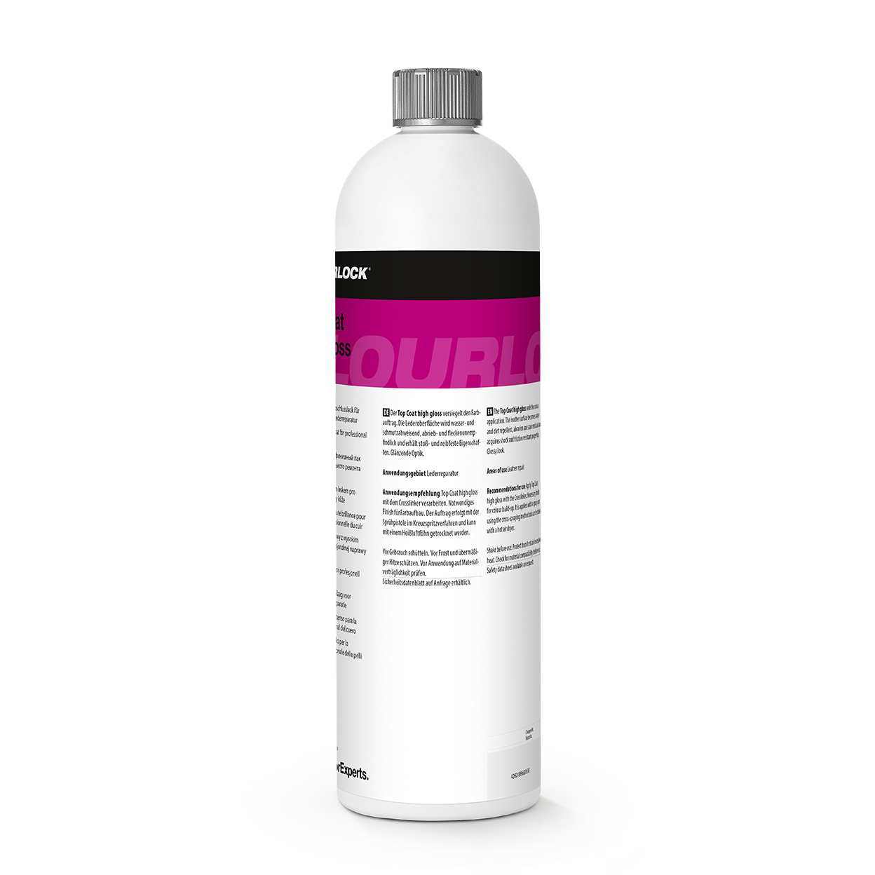 Was macht COLOURLOCK Top Coat High Gloss? — Der hochglänzende Abschlusslack schützt farblich repariertes Leder dauerhaft und erzeugt ein extrem brillantes, spiegelndes Hochglanzfinish für dekorative Möbel-, Fashion- und Interieurleder.