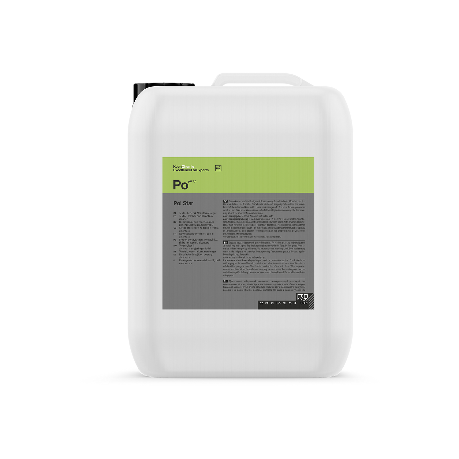Beim Koch-Chemie Pol Star handelt es sich um einen effizienten, neutralen Reiniger, der speziell für die Pflege und Reinigung von Leder, Alcantara sowie Textilien wie Polster und Teppiche entwickelt wurde. Seine fortschrittliche Formel ermöglicht eine tiefe Reinigung, ohne dabei die Materialien zu beschädigen oder Wasserränder zu hinterlassen. Die enthaltene Konservierungsformel schützt zudem vor schneller Neuverschmutzung und erhält die Originalimprägnierung des gereinigten Materials. Mit Koch-Chemie Pol Star erhalten Sie ein Produkt, das sowohl für den professionellen Einsatz als auch für ambitionierte Heimanwender ideal geeignet ist.