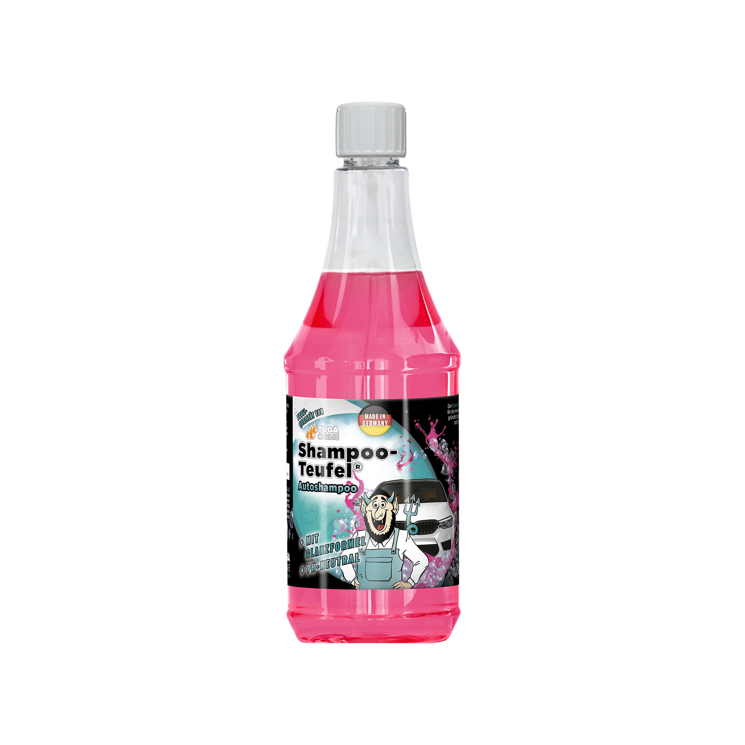 Der Tuga Chemie Shampoo-Teufel® ist ein leistungsstarkes Autoshampoo, das Straßenschmutz, Fettfilme und Alltagsablagerungen zuverlässig löst, dabei eine hohe Gleitwirkung bietet und die Lackoberfläche sauber, frisch und schlierenfrei hinterlässt.